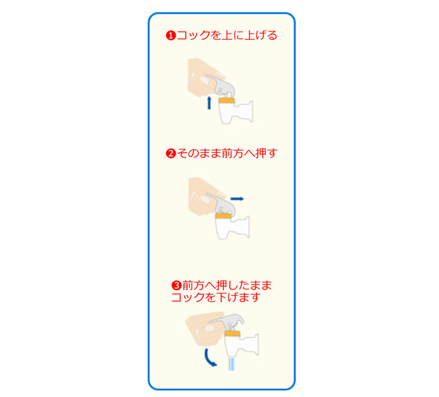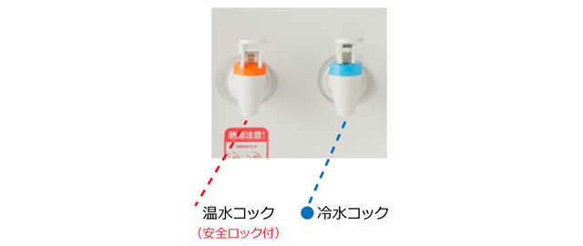 お子様のいたずら防止のために、冷水コックにも安全ロックをかけることも可能です。ご希望のお客様は担当の加盟店・販売店にお気軽にお声がけください。